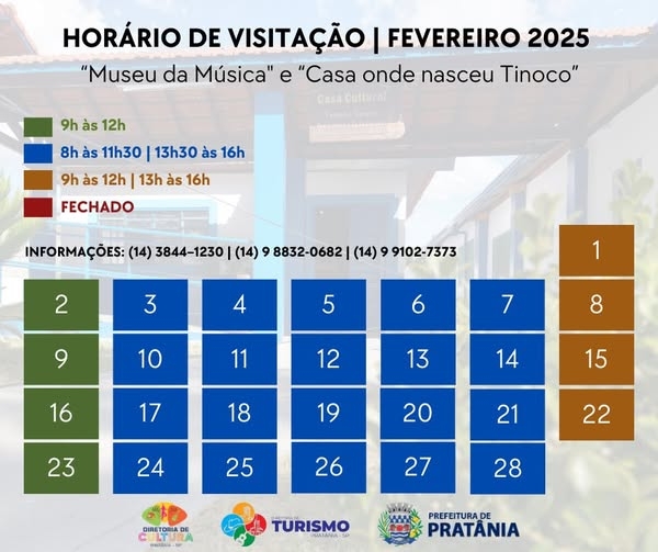 Confira o horário de visitação do Museu da Música e da Casa onde nasceu Tinoco, para o mês de fevereiro