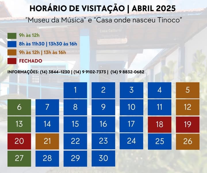 Confira o horário de visitação do Museu da Música e da Casa onde nasceu Tinoco, para o mês de junho*. 🤠