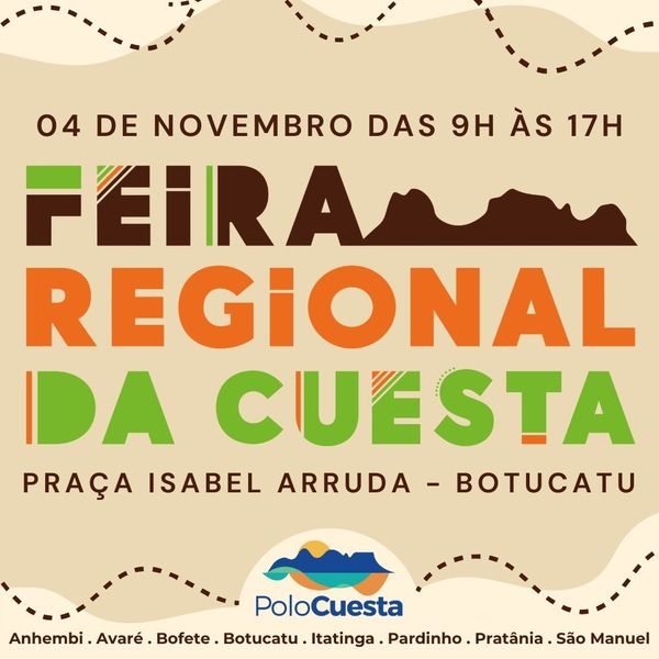 O município de Botucatu sediará no próximo sábado, 04, na Praça Isabel Arruda, mais uma edição da Feira Regional da Cuesta. O evento, vai trazer o melhor da gastronomia e do artesanato das cidades que integram o Polo Cuesta.