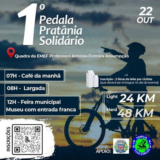 A Prefeitura de Pratânia, em parceria com o grupo Família MTB Pedal@ Amigos, de Botucatu, abriu as inscrições para o passeio ciclístico "Pedala Pratânia Solidário", que acontecerá no domingo, dia 22 de outubro.